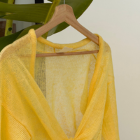 Hand knitted short cardigan is ideal for delicate and sensitive skin. Soft linen yarns are durable, ecological and natural. Eco linen yarns sweater dress is see through.