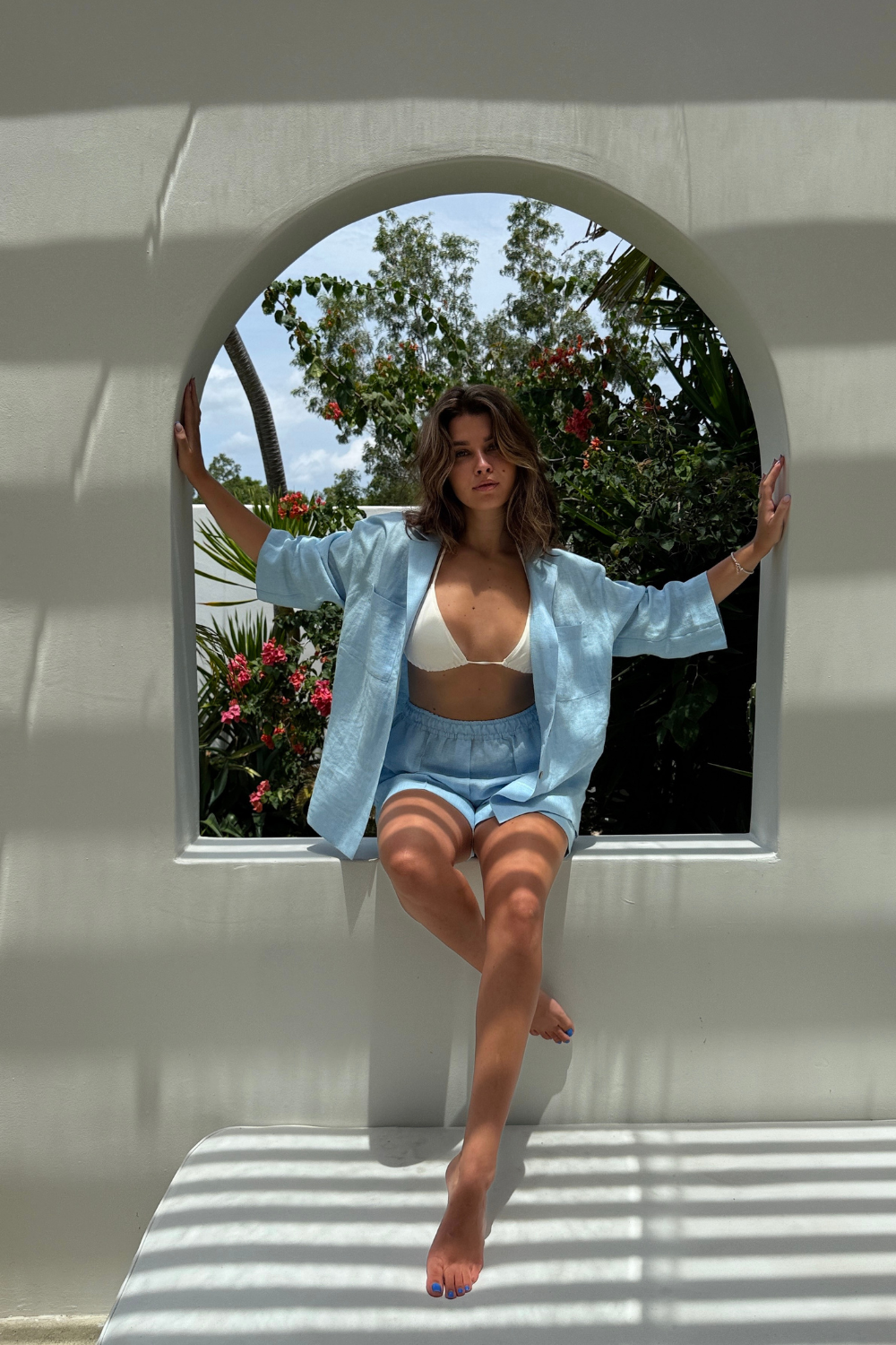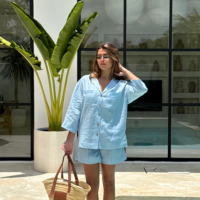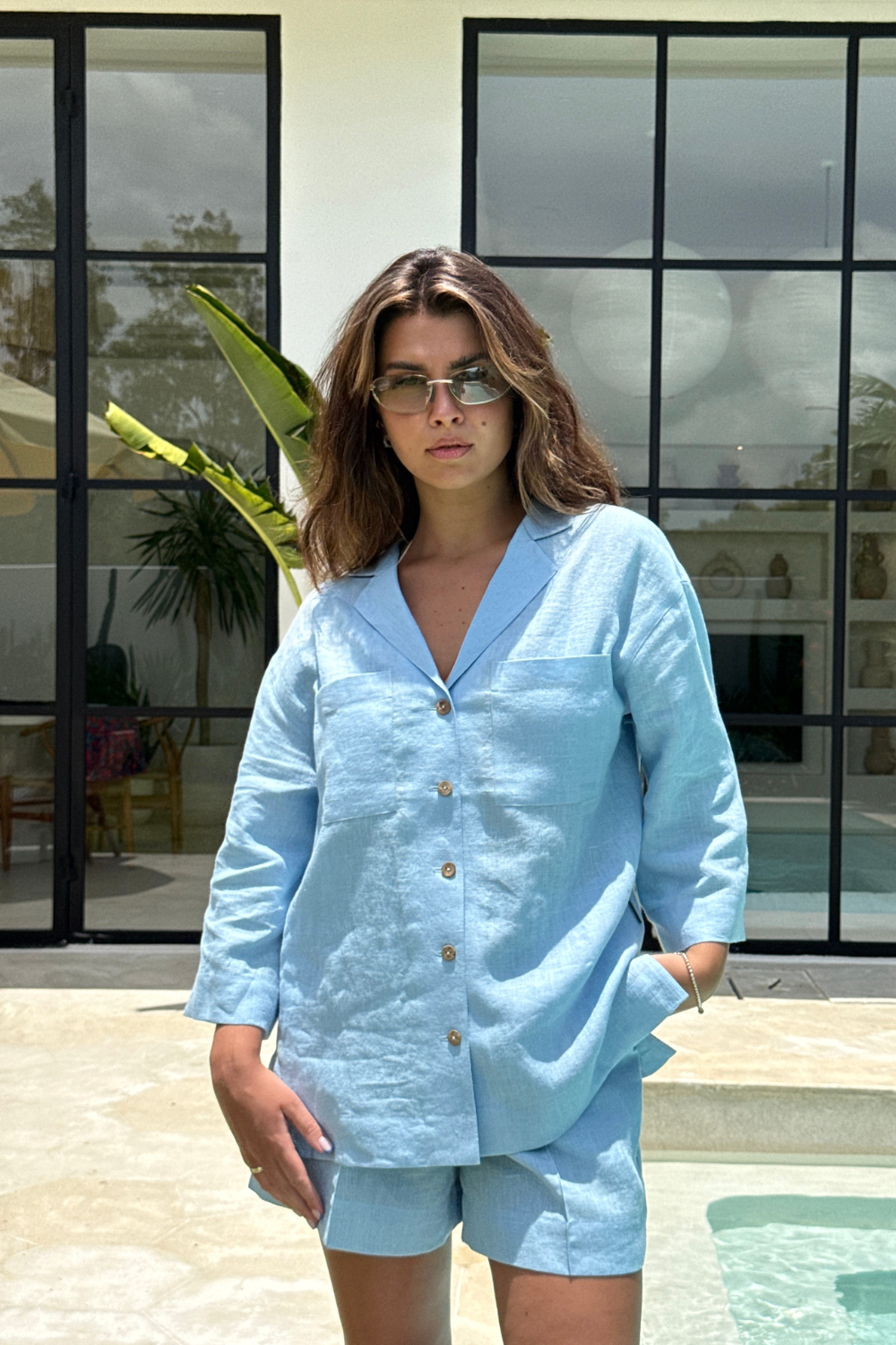 A linen shirt designed for everyday comfort and a clean, modern aesthetic. Featuring wide, cropped sleeves and a distinctive collar, it creates a relaxed yet structured silhouette. Two front pockets add a functional touch, while side splits ensure ease of movement and an effortless drape. Lightweight, breathable, and easy to style.