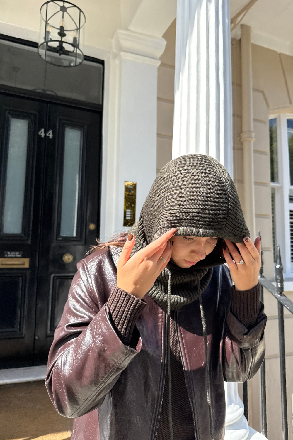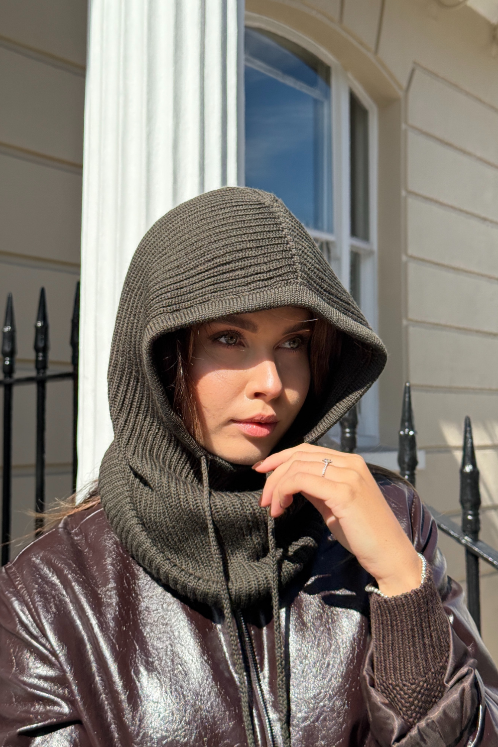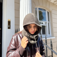 Vieno dydžio, stilingas ir jaukus, švelnios merino vilnos kapišonas su raišteliais apgaubs šiluma vėsiomis sezono dienomis net tada, kai vilkėsite paltus ar striukes be gobtuvo. Rankomis megztas didelis kapišonas turi raištelius, jų pagalba galėsite koreguoti kapišono susitraukimą.