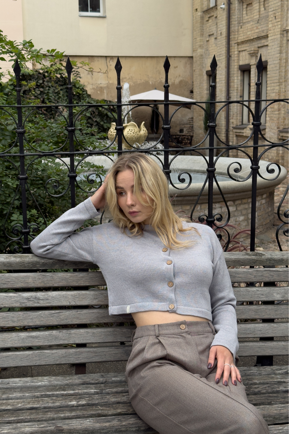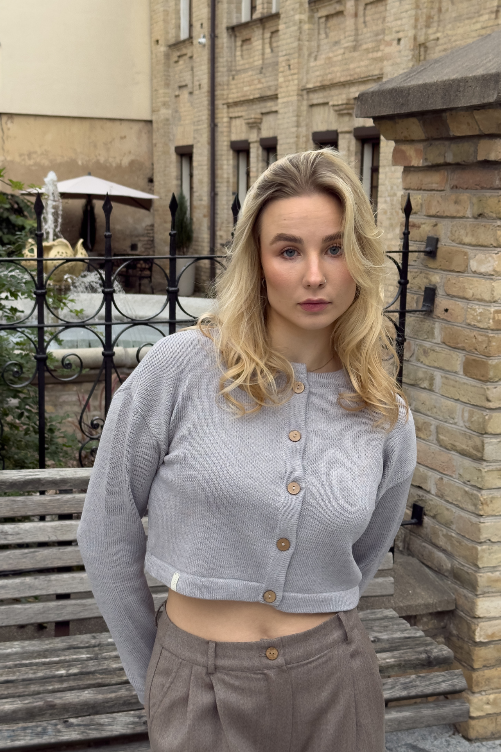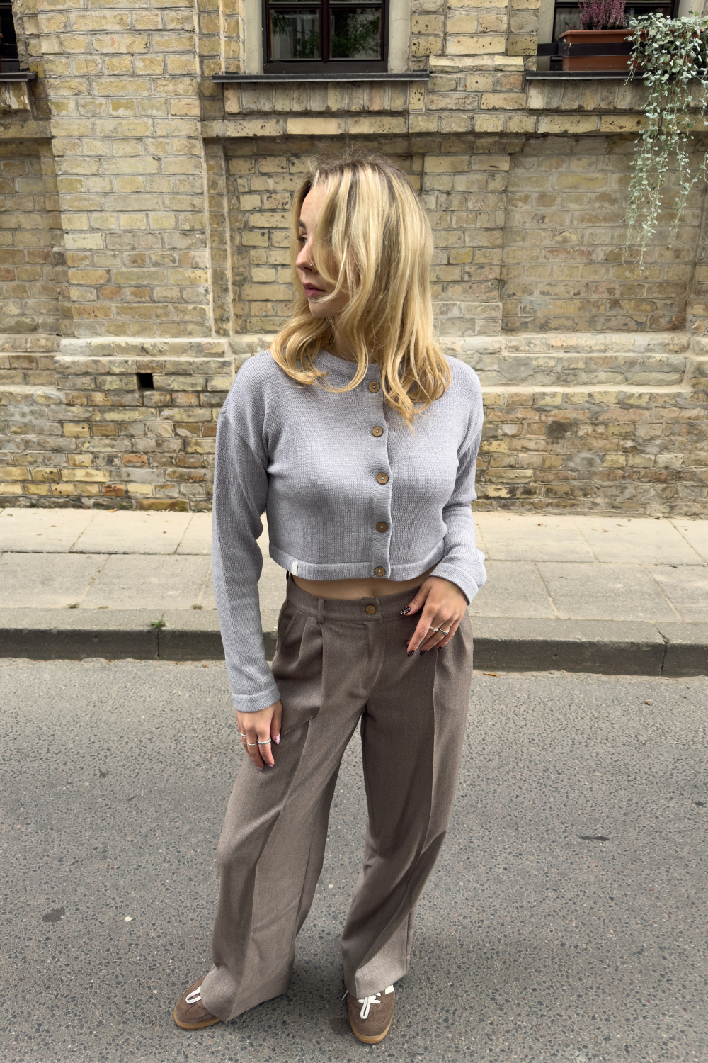 Švelnių merino siūlų crop top stiliaus megztinis su sagomis žavi moderniu minimalizmu. Jo moteriškas dizainas lengvai derinamas su kitais drabužiais, padedantis kurti stilingus kasdienius įvaizdžius. Natūrali merino vilna kvėpuoja, užtikrindama puikią kūno temperatūrą ir komfortą visą dieną.