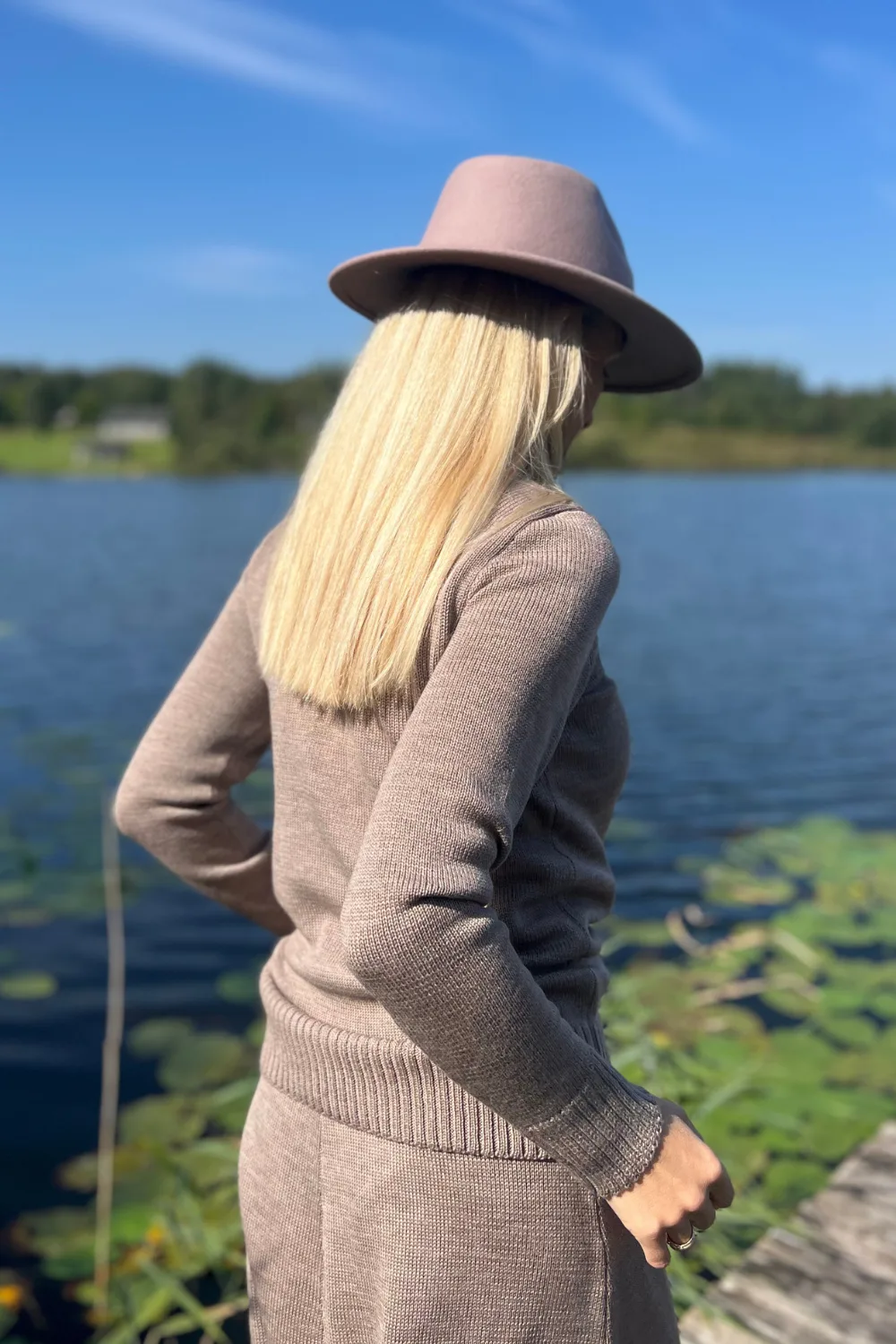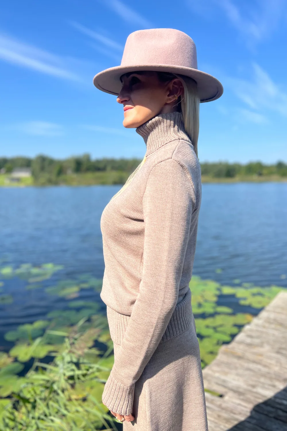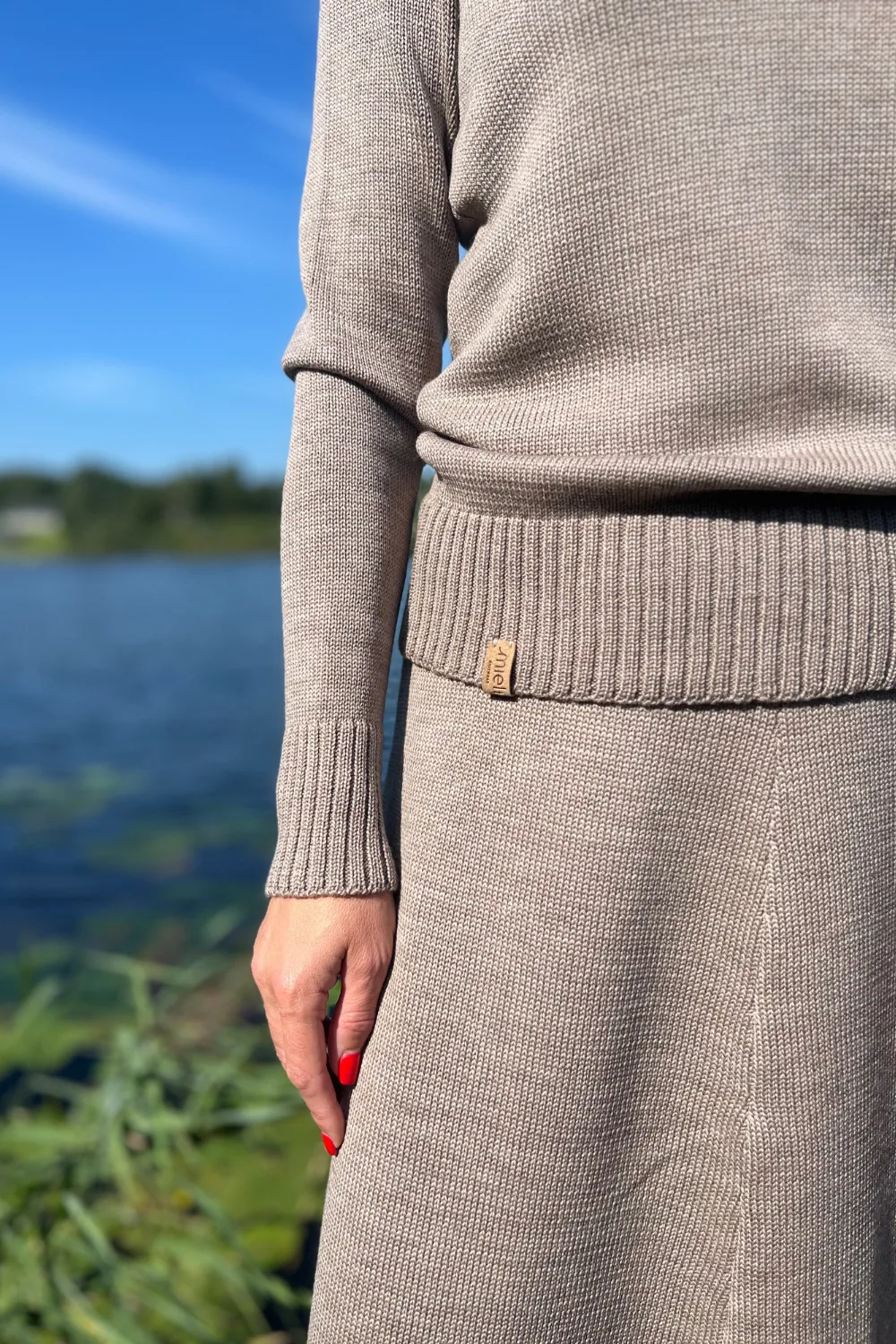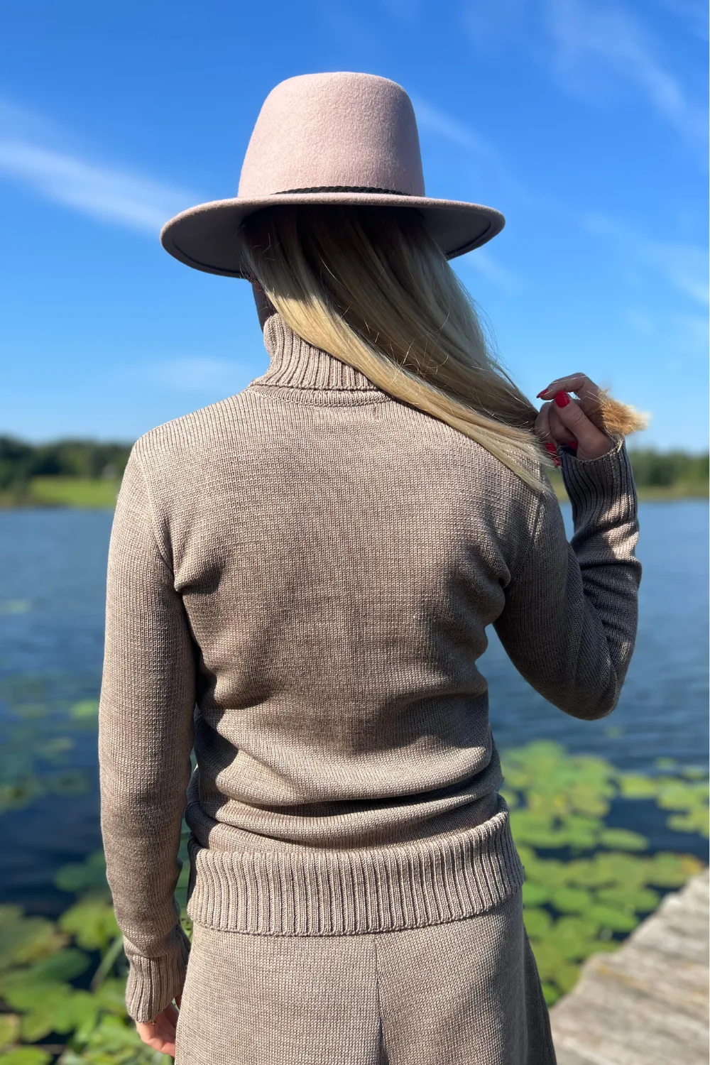 Modelio ūgis 168 cm, megztinio dydis S, taupe spalva