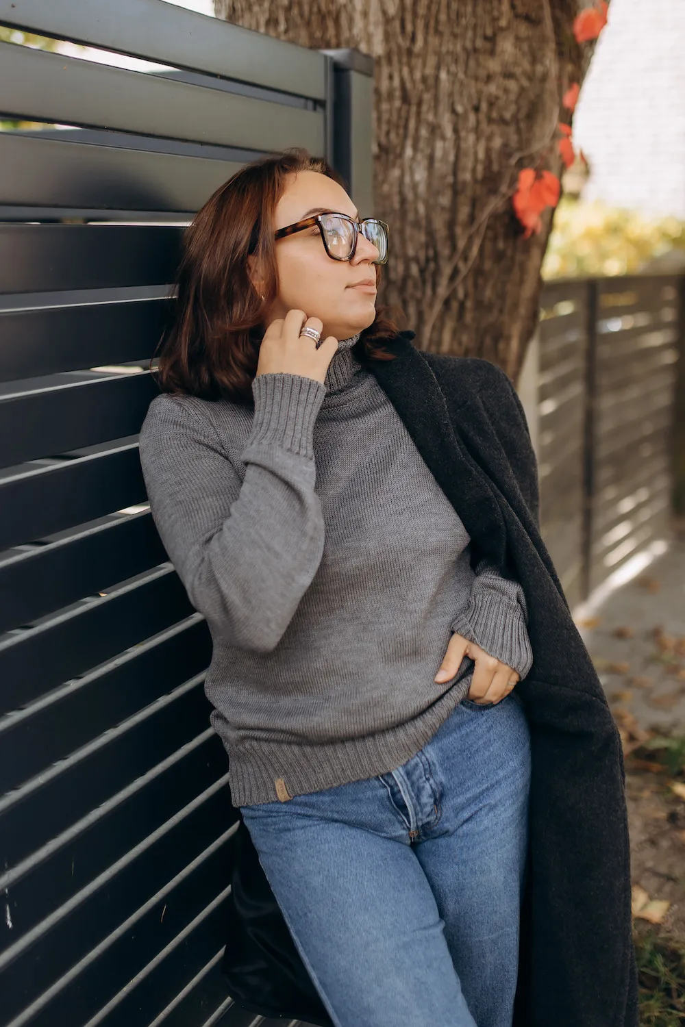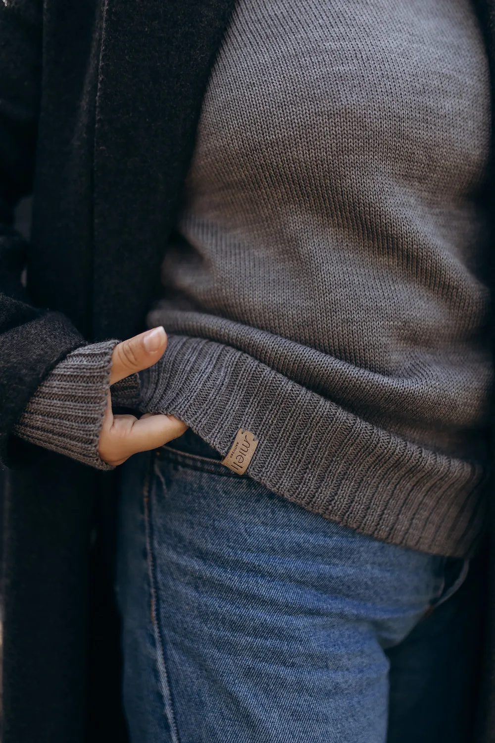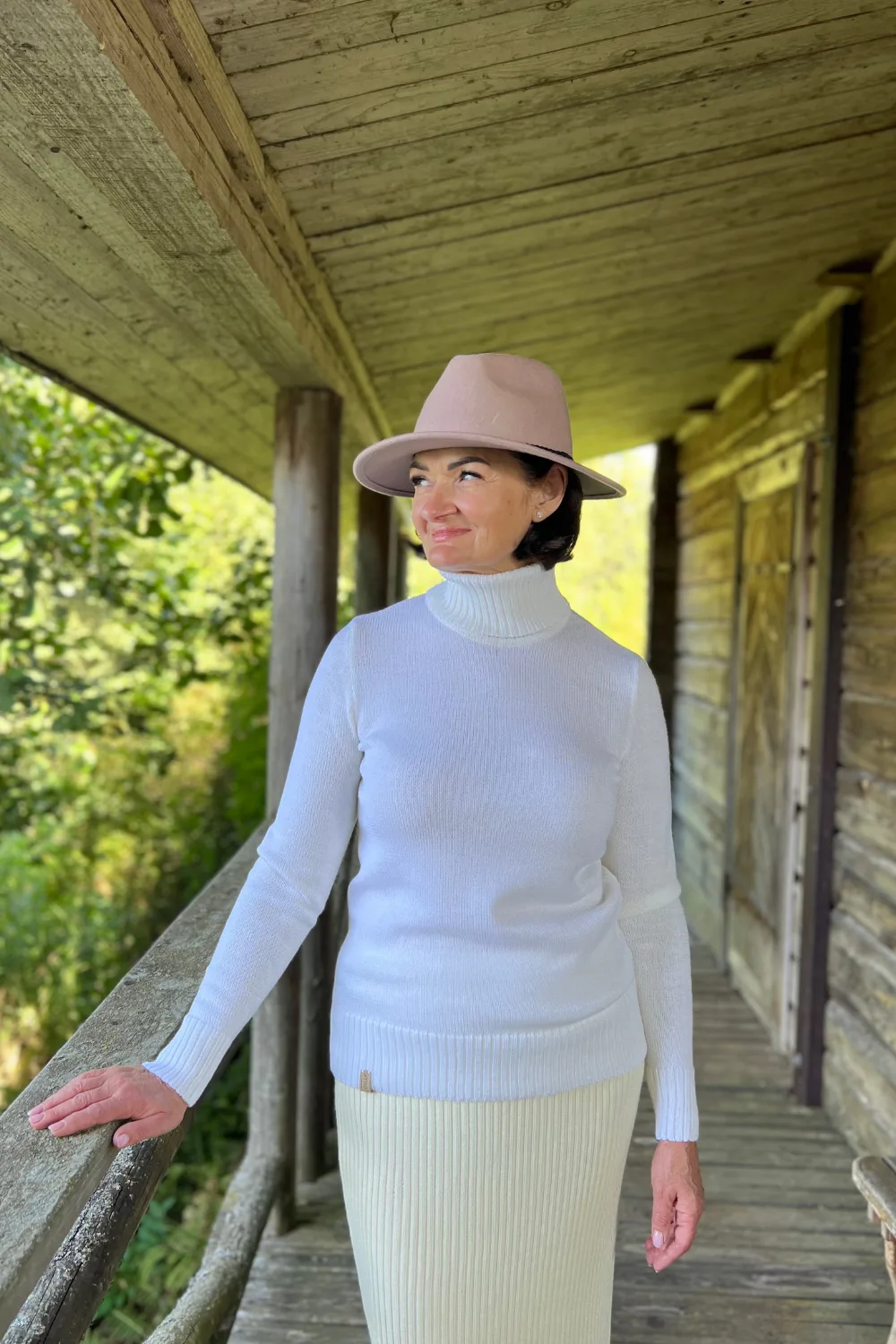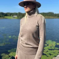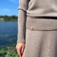 Šaltuoju metu, šis megztinis su aukšta, golfo stiliaus apykakle yra pats geriausias pasirinkimas. Tikra merino vilnos šiluma jaukiai šildys ir neapkraus kūno. Riešus maloniai apkabins stulpeliu megzti rankogaliai. Natūrali merino vilna kvėpuoja, tai užtikrina puikią kūno temperatūrą.