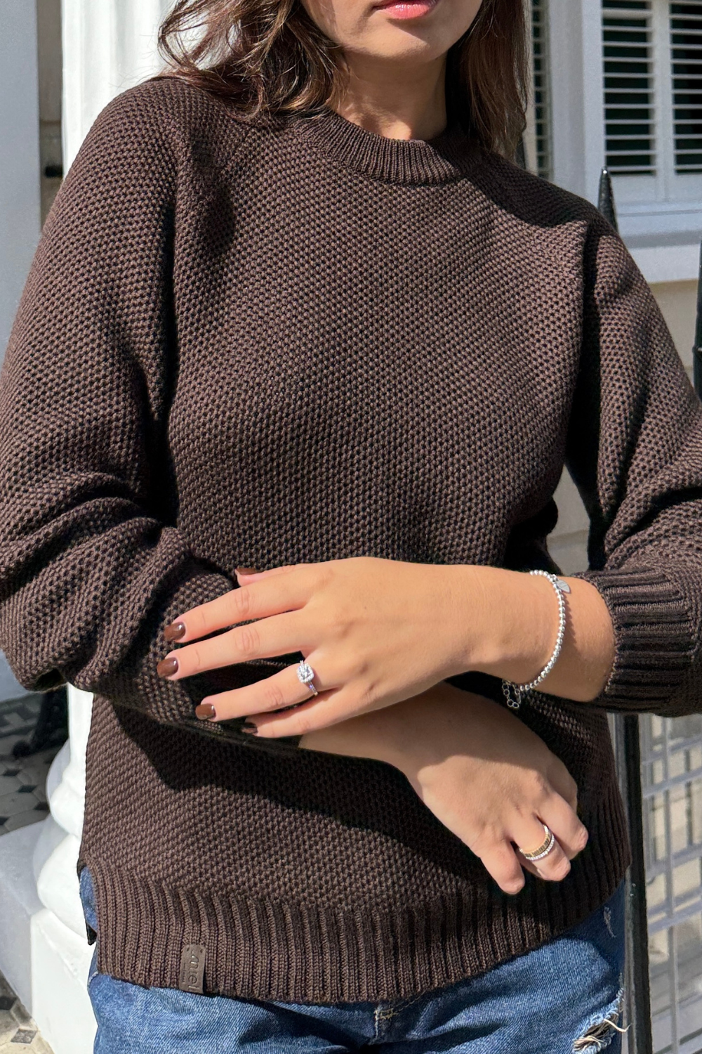 Minkštas ir jaukus 100% švelnios merino vilnos megztinis numegztas nostalgišku koriuko raštu. Moteriškas merino megztinis turi šoninius skeltukus, apvalią apykaklę. Laisvas megztinio modelio siluetas tinka visoms figūroms.