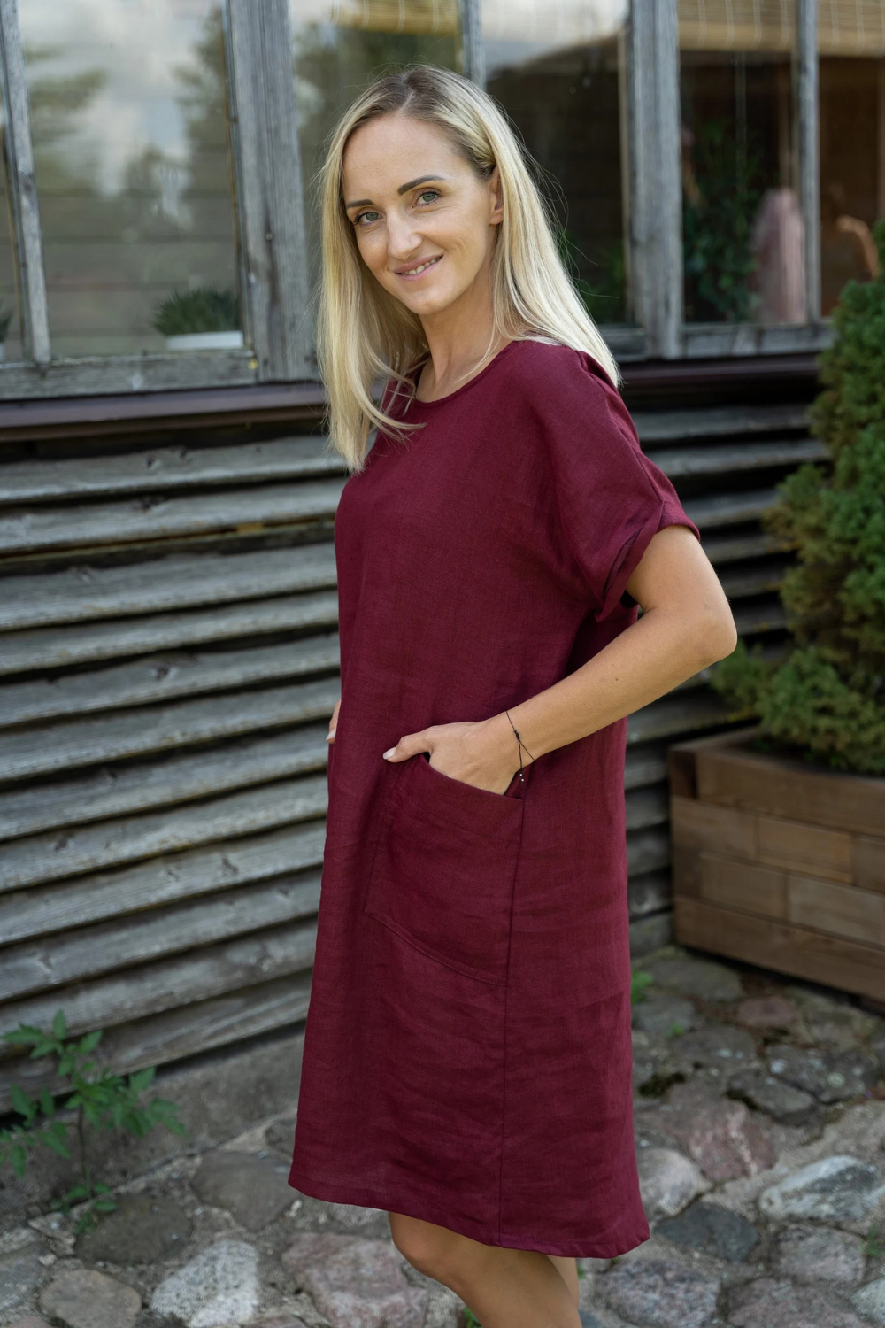 Minimalistinė lino suknelė su kišenėmis BETHY