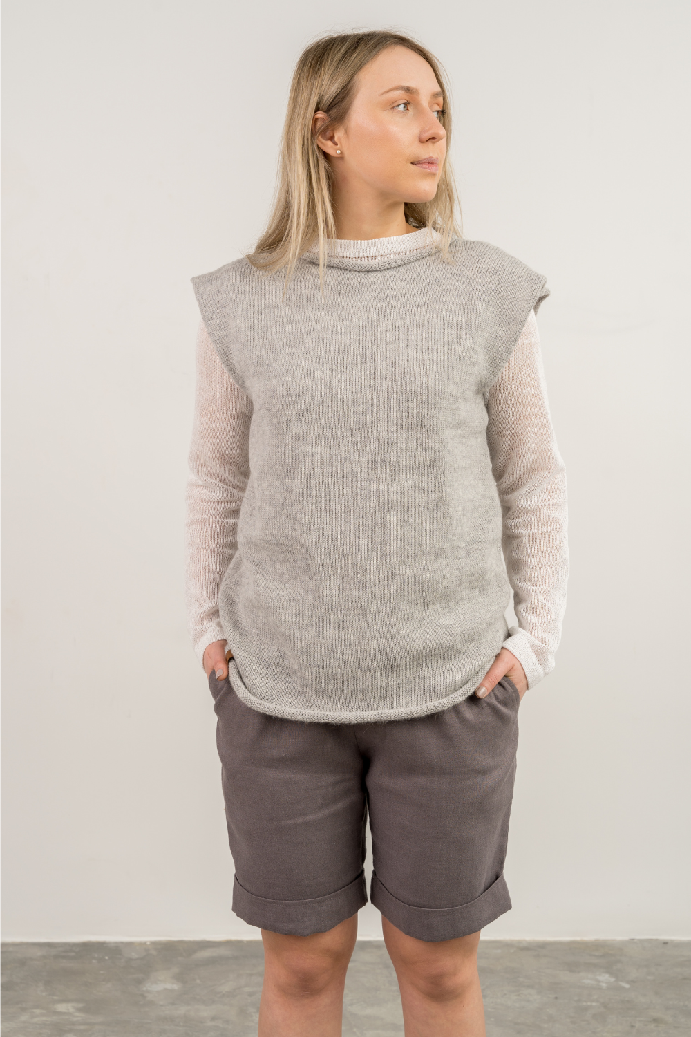 Minimalistinė merino, alpakos, moheros liemenė LUKNĖ