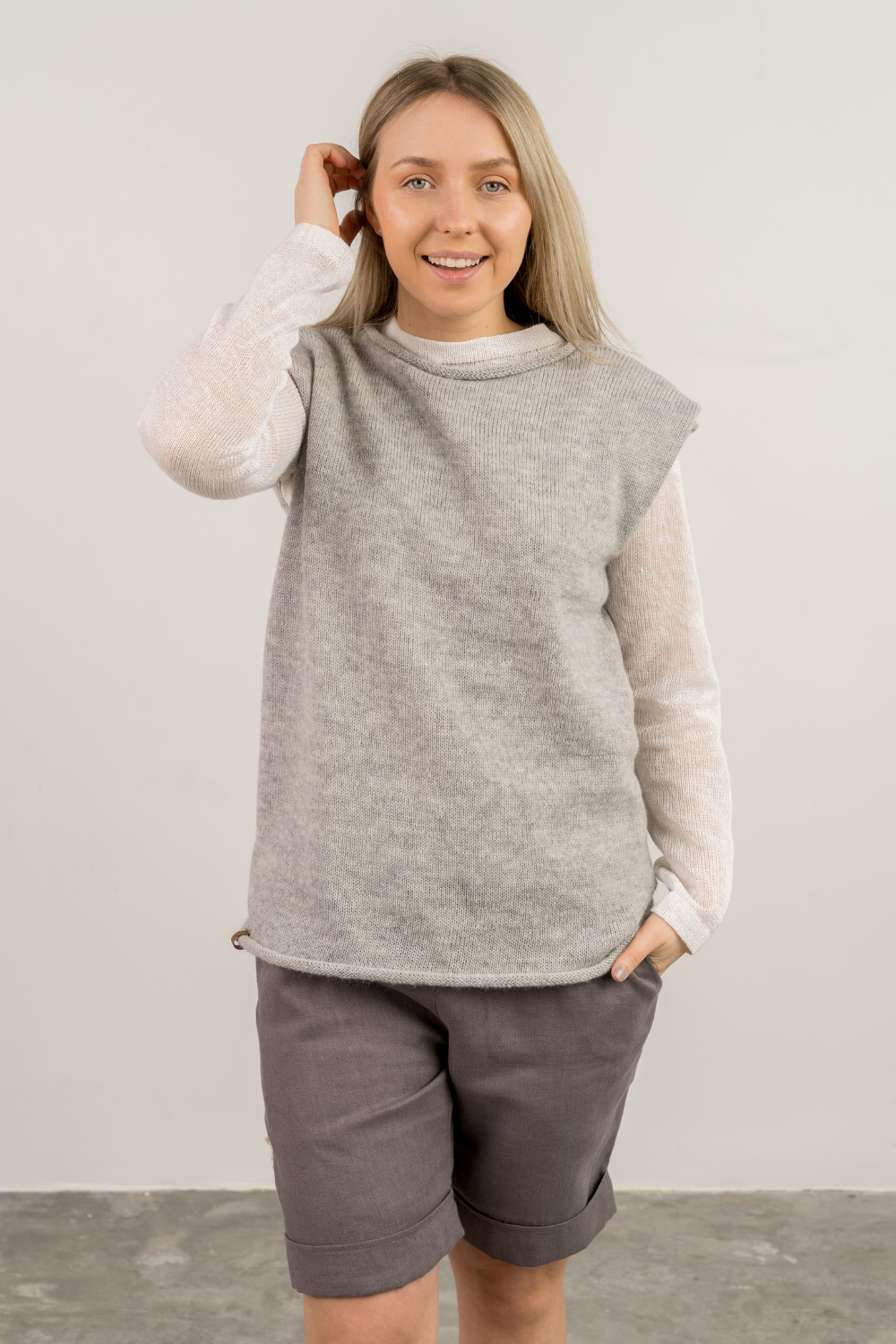 Švelnūs liemenės siūlai suverpti iš merino, alpakos, moheros vilnelės. Minimalistinė, lygaus rašto liemenė jaukiai šildo ir maloniai glunda prie odos. Liemenės modelis idealiai tinka sluoksniavimui.