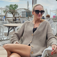Modelio ūgis 168 cm, kardigano dydis XS/M
