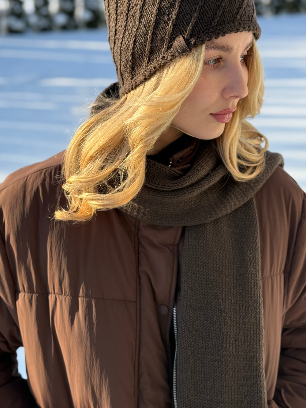 Sale! Pasirinkti savybes This product has multiple variants. The options may be chosen on the product page Pridėti prie patikusių Pridėti prie patikusių Taupe spalvos megztas merino vilnos šalikas €80.00€70.40